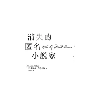 《華盛頓郵報》書評:《消失的匿名小說家》問的不只是作者的身分,更是一個攸關生死的叩問。這本小說銳利而無法預測,又極具娛樂性……好了,再透漏更多就要破壞閱讀樂趣,還會嚇到各位讀者啦。