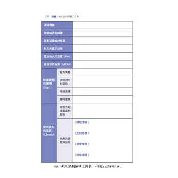 ◎三項要件:預擬ABC談判架構工具表,讓談判不失焦