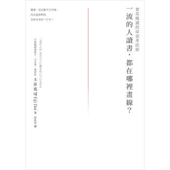 土井英司更親自示範自己如何「畫線」,精選四十四本商業好書,畫出他自己獲益匪淺的文句,與讀者分享他獨特的深思考技術。