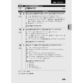 藉由不同的「場合」和「角色關係」,掌握各類型會話的聽解技巧,並且擴充常見的主題及關鍵字,例如電話溝通、氣象預報、店員服務用語,都有固定的表達方式。