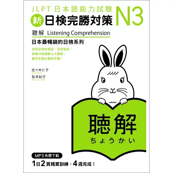 〈聽解〉的關鍵是「聽到並且理解」,不只要聽到正確單字,還要能辨別句意,因此需要階段性訓練及技巧指點。本書規劃五大章,前四章從「發音」、「句型∕文法」、「會話表現」到「日檢題型」逐步訓練,延伸展開各種「主題」、「場合」並擴充「詞彙」,每日一個焦點訓練,內容由短逐漸加長。第五章則是總練習題,以4週完成訓練目標!