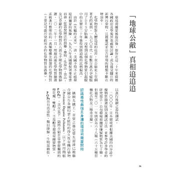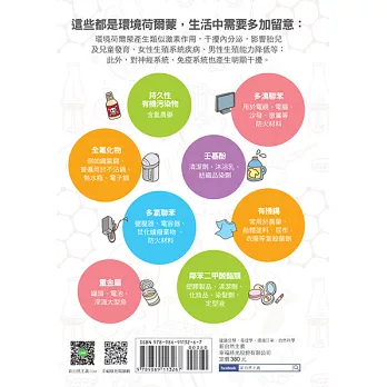 本書透過40篇輕薄短小、淺顯實用的識毒錦囊,教你輕鬆理解什麼是「環境荷爾蒙」,如何簡單安全的使用各種便利生活的化學材質!