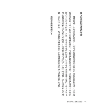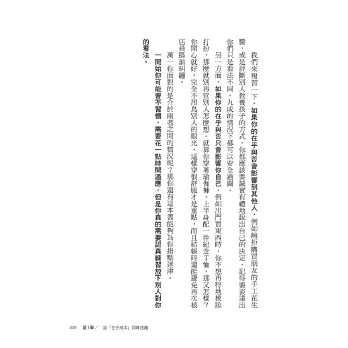 ★「這本書非常適合善良但在乎別人看法的人,我們都很怕被別人討厭,就算拒絕他人,但內心還是會困在造成別人困擾這樣內疚的心理。這本書用著幽默的口吻跟生動敘述開導眾生,用各種生活與工作面向,帶你學會將重點放在『在乎自己覺得有意義的事』。」──整理鍊金術師 小印