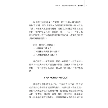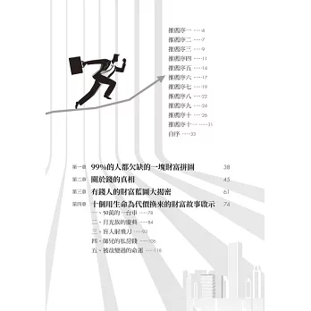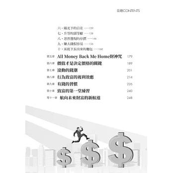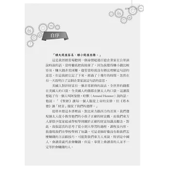 金錢就是價值的交換,要成為成功的有錢人,必須要從內在的素質建立,創造財富的方法步驟和目標,預期相信自己成功後人享受的生活態度。書裡的小故事常常能勾動我心裡的感動,週遭有好多人都陷入同樣的情境,期待這本書可以給朋友們新的智慧,走出自己快樂幸福的人生。