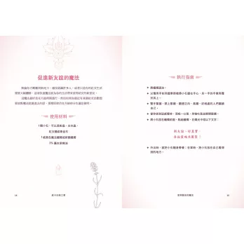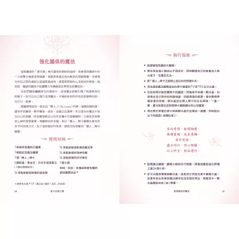 復合、招桃花等關係魔法大概是最常被詢問的服務項目,由於我沒有開放為幫個案施法的服務,由此常請個案自己作簡單的小儀式去祈願。有了這本書未來大家可以更輕易地為關係加分囉。——Claudia Studio-女巫的塔羅.芳療/植物系女巫-Claudia