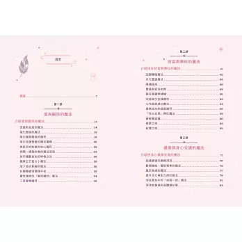 ◎「愛與關係」、「財富與興旺」、「健康與身心安適」3大領域,50種日常威卡魔法。