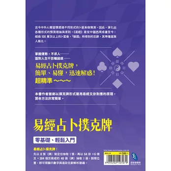 最新發明易經占卜撲克牌,以兩次抽牌新結構專利,馬上可得384個爻之一個,爻辭立即呈現,使占卜更為生活化,隨時有惑,心誠抽牌,隨時有易經導師指引。