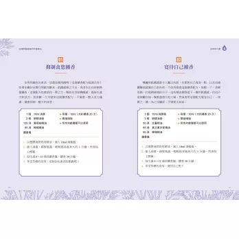 這本書針對從來沒使用過精油的新手,詳細介紹安全稀釋的比例和精油使用法。
