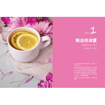 ‧「作者是專業的芳療師,不會刻意推銷某個精油品牌。第一章提供很實用的精油使用建議,第二章和第三章特別針對瘦身用途,推薦強力燃脂效果的精油,再來就是精油配方了,雖然作者列出無數的配方,包括吸入瓶、浴鹽、擴香等,但版面配置很方便查閱,一下子就可以找到適合自己的配方。這本書暖暖的色調真令人開心,我沒事翻一翻就會覺得很溫暖。很高興我買了這本書,對於減重很有幫助。」──C Robinson