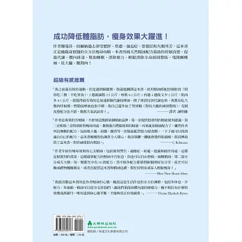 作者莎曼珊‧伯爾納過去深受肥胖、焦慮、強迫症、恐慌症和失眠所苦,這本書正是她親身實踐的全方位瘦身攻略。