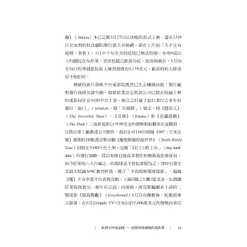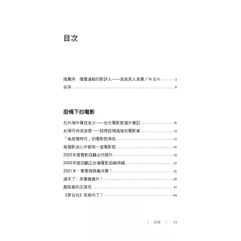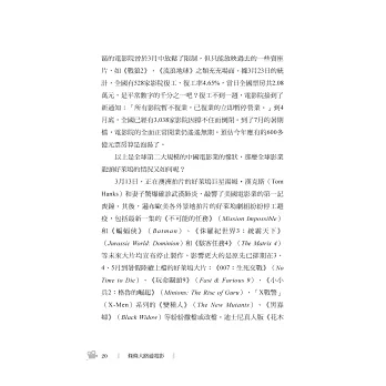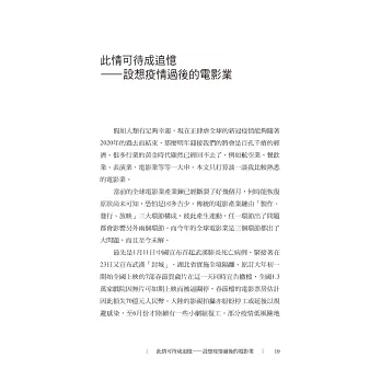 由於我每次在選題時都會盡量聚焦在一些新聞熱點,因此讀者若依時間軸來閱讀書中文章,多少可以看出這一年來在疫情籠罩下的台灣乃至國際局勢的一些有趣變化。文章數量最多的自然是「疫情下的電影」相關話題,談到疫情對台灣電影市場以及全球電影產業的影響,其中感受最深的是往往發生「計畫跟不上變化」的情形,例如我在2021年5月初才談論今年暑期檔的電影市場反撲趨勢,不料還不到一週時間,台灣便突然出現了疫情暴衝,雙北乃至全國迅速陷入防疫三級警戒的恐慌之中,連過去一年從未勒令關門的全台電影院都被迫停業了,所謂的「暑期檔」尚未開始便已夭折。而與此同時,歐美多個地區的戲院卻陸續解封,彷彿他們的疫情危機正在過去,其實他們國家每天公布的確診數字仍是好幾千乃至好幾萬,而台灣連續一週的確診數字不過是好幾百而已!