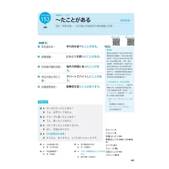 ★ 每種句型都有五個例句加上五個對話,詳細示範句型的實際用法。