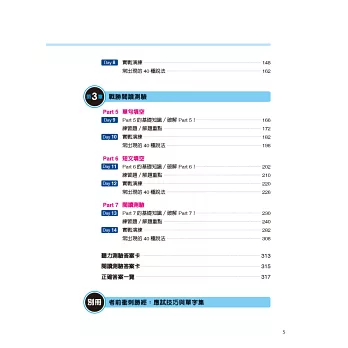 書中收錄了報名方式等測驗須知、各個Part的特徵和解題技巧、與正式測驗相仿的題目,甚至連出題機率超高的單字都有,可說涵蓋了所有與多益測驗相關的內容。