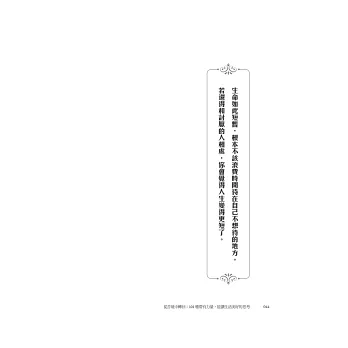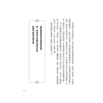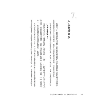 全書由101篇簡潔、清晰又充滿智慧的短文構成,每一篇都是一個清新有用的觀點,告訴我們:解決人生問題,最重要的不是學習新的功課,而是要懂得拋開過往那些必須放下的陳舊道理。