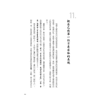 ★我們活在一個需要與人頻繁連結的社會裡,但這並不意味著我們該忽略與自己對話的重要。我們很在意他人的評價,卻很少關注自己的需求;我們會為了別人的一句話感到失落,卻不曾看到自己早已破碎千萬次的心;我們願意對他人付出萬般好,卻捨不得對自己有一絲寬容。閱讀本書,你將會知道人生的順位該如何調整,如何重新洗牌!李郁琳╱臨床心理師