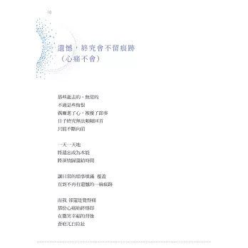 這個世界,越來越快,瞬息萬變的生活步調,唯一不會改變的卻是人我關係那些幽微難解的情感。我喜歡用詩的方式,即使沒有詳細的背景人物說明,但是在詩這個簡單的文體中完整的闡述了那時刻的感觸或哀傷。我想,就留下一本詩集給這個世界吧。我們越來越少讀詩了,希望這本詩集,有某些文字能夠敲中你的心。讓我們同時間感受到那文字裡的冷冽與熱情。