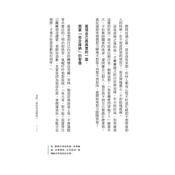 個性敏感如我,在三十五歲之前,經常以眼、耳、鼻、舌、身、意,覺察我自己,以及和別人、和萬事萬物的關係,甚至因為敏銳的直覺,形成準確的判斷,而難掩驕傲欣喜。