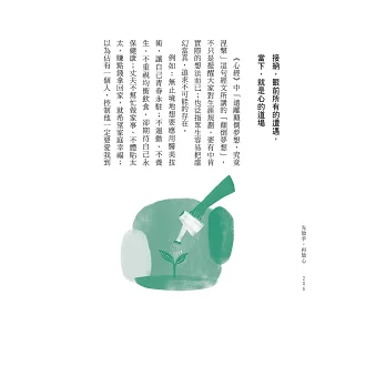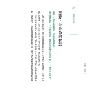 比較少分享如何向內出發,找到自己的天賦,在探索到生命的意義與價值之後,先學會肯定自己,最終願意為眾生再度放下自己。