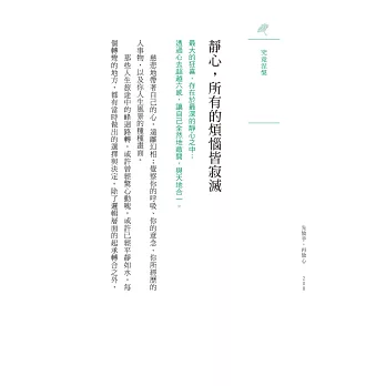 時值全球正為新冠肺炎疫情所波及,心靈渴望再度飛揚的此刻,推出《先放手,再放心——我在[心經]學到的人生智慧》全新增訂版,重新編列為我的第一一六號作品,獻給所有與我在茫茫書海中,同船共渡的讀者,也獻給在茫茫人海中,尋找靠岸的眾生。包括:懂得懺悔、願意感恩的你。