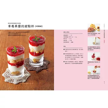 ☉草莓果醬的甜點杯:將蜂蜜蛋糕、鮮奶油、果醤疊放於杯內,視覺效果會更美觀。
