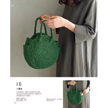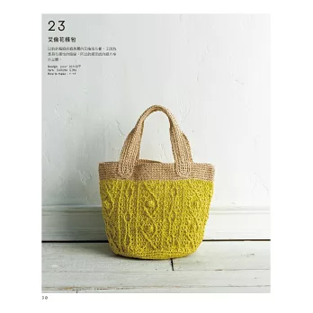 天然麻線樸實的質感,本身就帶著輕鬆的休閒風情,但是只要在配件與花樣上加點巧思,亦能成為適合都會穿搭的時尚單品。使用木漿為原料的Eco Andaria織線,輕盈防曬,有著拉菲草般舒適的觸感與美麗光澤,也是對環境友善的素材。天然材質織線結合簡單的鉤織針法,只要依照詳細的編織圖和製作說明進行,即使是初學者也可以完成書中美麗的手織品,輕鬆享受鉤織的樂趣!