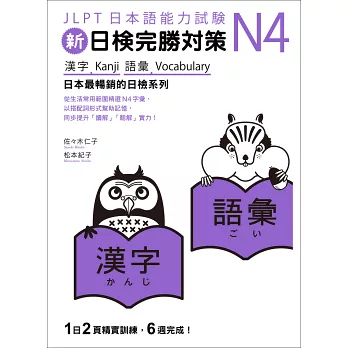「新日檢完勝對策」系列由「JLPT日本語能力試驗」教材權威佐佐木仁子、松本紀子老師共同執筆,為考生規畫兩個月的應考讀書計畫。全套書籍從N5至N1分級共15冊,扎實奠定〈文法〉〈讀解〉〈聽解〉及〈漢字‧語彙〉四大基礎。