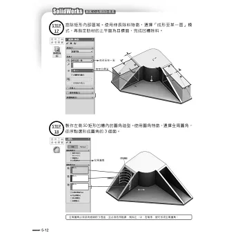 本書以SolidWorks2012為寫作版本,主要基於此版本可通用目前PC上的任何作業系統而受業界廣用,後續新版本如2013、2014、2015...等皆適用本書所述之四大基本成型與六大曲面成型的設計概念,且適時的以「提示框架」引導學習者連結與展開相關資訊,以協助使用者加以轉化應用。