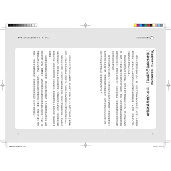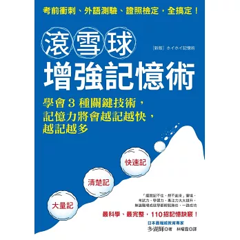 正如本書作者,日本知名「心理學家與腦力開發大師」多湖輝所言,人類腦容量或功能其實沒有太大差別,記憶力的好壞只在有無了解「竅門與技術」,若能通盤理解與認真應用,記憶力必定會有驚人提升,甚至產生如滾雪球般的巨大增長。
