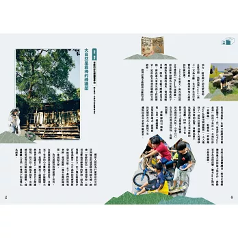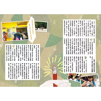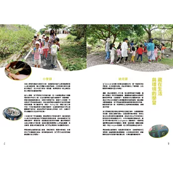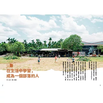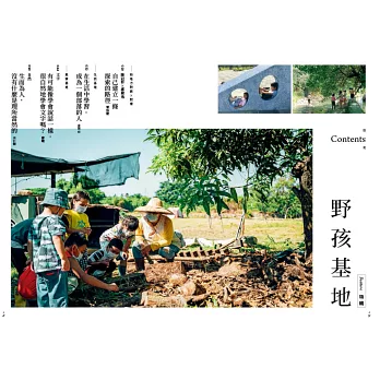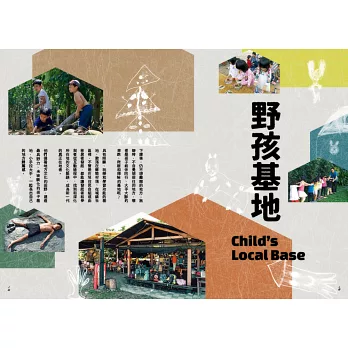同時,將野孩基地分為「生活」、「思辨」、「語言」、「在地」和「空間」五大類別,探訪了從私人幼兒園成為部落共有的「美園教保中心」、形塑台語和阿美族語語言環境的「野塾」和「Tamorak 共學園」,創辦者皆直視傳統教育體系問題的「台南塾」和「找路教育工作室」,及邀請關注城鄉空間的「眼底城事」分享孩子打造的空間案例……呈現各地區對於學習或與孩童互動的各式可能性,不只有單一做法。