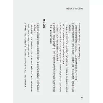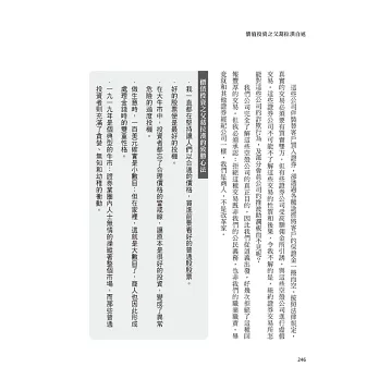 書中有一章節叫做「好的股票便是最好的投機」,由於從小母親因投機失利,使得班傑明.葛拉漢堅定了信念——不倚靠投機方式做投資,反而每一次所做的投資規畫,都是因為看重了公司的內在價值。