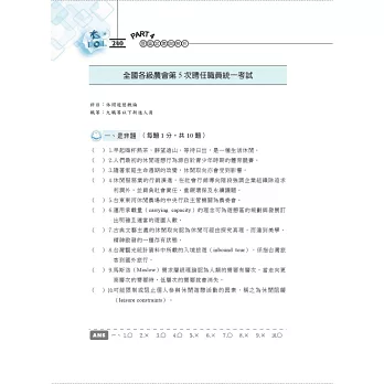 本書蒐羅農會歷屆新進人員及升等人員各相關試題,並附有全國各級農會第 5 次聘任職員統一考試最新試題及試題解析與說明。正所謂「鑑往知來」,透過考古題之研習及演練,能使考生之實力更進一步強化,並能使讀者能夠全盤掌握近年命題重點。
