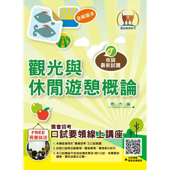 「觀光與休閒遊憩概論」是農會招考及觀光、導領相關類別考試重點科目之一。依據以往歷屆試題的命題型態,多屬於結合時事與生活化之「混合題型」為命題方向,相信讀者與考生只要詳讀本書與增加歷屆試題與考古題的熟練度外,再與時事和生活化做一個結合,相信一定能獲取高分,金榜題名。