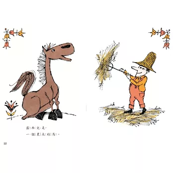 露西兒是一匹馬,一位農夫工作的夥伴,她一直是在田裡犁田,工作的馬。但農夫的太太不這麼認為。她認為露西兒應該和她一樣,做個貴婦,在家中喝茶,聽收音機。儘管對露西兒有不同的認定,農夫還是跟太太一起把露西兒帶去鎮上買東西。對小孩來說,農夫不是解決問題,是將兩種矛盾放在一起──當貴婦,或者是當一名工作者。至於夾在兩種主張之間的露西兒,不是單純屈服於某一方,是在親身嘗試體驗中得到了選擇的權利與智慧,得以重新作為犁田的、工作的馬。所以小孩讀的時候,會認同的不是太太,也不是農夫,認同這一匹馬。這是一個好的練習。