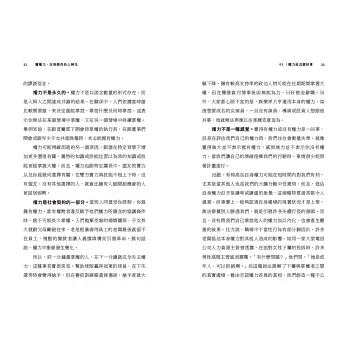 真正有實力、有權力的人,往往表現更為有親和力、平易近人。日常生活中何時該用或不該用到權力,本書提供非常豐富的情境、案例研究,幫助你更自在地運用權力,展現你的力量。