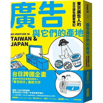 本書搜羅2015~2021年間逾百項廣告事例,聚焦化妝品、感冒藥、人壽保險、啤酒、速食店、超商、飲料等13種與一般人生活息息相關的廣告類型,提及全聯、GOGORO、日清泡麵、SAPPORO啤酒等台日知名品牌,透過比較台日兩地廣告表現手法的不同,分析台日文化的差異,挖掘廣告創意背後的文化意涵。