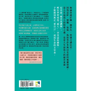 第一本以心理學角度剖析尼采的生命及其哲思,並藉由美國知名心理學家卡爾‧羅哲斯的「海島理論」,說明尼采在《查拉圖斯特拉如是說》等著作中的「權力意志」、「超人思想」等觀念如何落實於日常生活中,並提出改善情緒問題的具體作法,幫助我們恢復自尊、找回完整的自我。