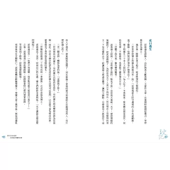 太史公司馬遷在《史記》中記載的事蹟,不僅僅是故事,更是歷史中的「生命檔案」。希望藉由這些歷史人物的風範,青少年讀者能對生命有更多理解,開闊眼界!