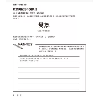「從昨天翻開這本書的第一頁開始,我就停不下來了!這本書超酷的,它不僅有趣、涵蓋許多層面,也切中要點,實在令人印象深刻。」 —Erich Gamma —IBM傑出工程師、《Design Patterns》作者之一