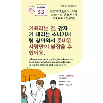 中文裡有句話叫「戲如人生」,所以即使是虛構的,任何戲劇裡或多或少都藏著人生的哲理。衷心希望本書的讀者們透過書中精選的韓劇名台詞,不僅學習到韓語及韓語知識,也能順便學習人生道理。最重要的是,希望每一位閱讀本書的讀者,都能善用喜愛的電視劇,輕鬆閱讀本書,愉快地學習韓語,讓韓語能力更進步!