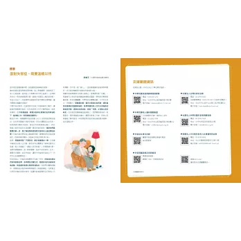 書末附上台灣與失智症相關的支援團體資訊,提供讀者參考,透過掃描QRCode,獲知更完整的支援團體與社福資訊。