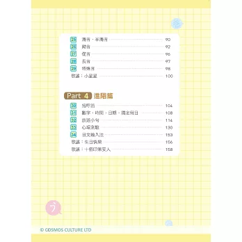 平假名、片假名、進階篇中,分別收錄有趣好聽的歌謠,可以邊聽歌邊複習假名,加深學習印象。