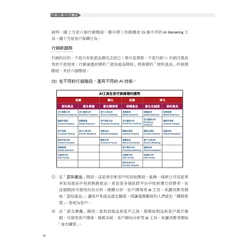 本書將產品銷售週期分為六個階段,再針對不同階段的需要來設計出適當的AI工具,讓行銷人員可輕易上手,達成業績目標。