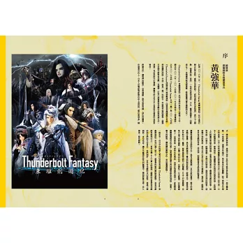 本書匯集《Thunderbolt Fantasy東離劍遊紀》五年來的製作點滴,突破以往寫真書的概念,追溯創作緣起,從幕後創作的角度切入,試圖勾勒出《Thunderbolt Fantasy東離劍遊紀》的完整面貌。