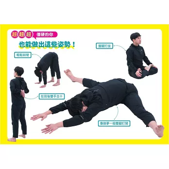 在特別容易變硬的部位,也就是「髖關節」、「肩胛骨」、「足部關節」這三處,將分成「超硬」、「超超硬」、「超超超硬」這三種等級的伸展操,讓大家可以依照自己身體的僵硬度來挑戰。