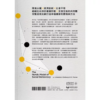 這樣的社會光靠市場經濟不夠,北歐國家的經驗顯示,理性、民主、協商的政治模式,可以打造一個有效率的大政府,滿足人民需要的基本生活條件。北歐打造出機會平等、性別平等的全民福利國家,盡力保障每個人不受貧窮、健康惡化、市場意外波動的重大影響,藉此形成一個互信互助的共同體。這套被稱為「社會民主」的制度、政治、與文化,才是北歐人幸福生活的祕密!