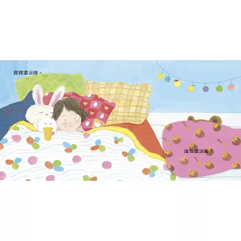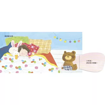 掀開小被子,原來是兔子、鴨子、小熊和大象還沒睡,他們需要小讀者來幫幫忙,唱一首歌、講一個故事、拍拍背……完成不同的睡前儀式,才心滿意足地進入夢鄉。