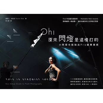 《Oh!原來閃燈是這樣打的》原本只是攝影師達斯汀.迪亞茲在flickr上的一項攝影計劃,但他無私地將自己所學所知的一切開誠佈公地分享,在網路上吸引了數以萬計的追隨者。他利用書本排版的特性,讓左邊是成品照片,右邊則是圖解範例,透過這裡面的五十張攝影作品與佈光設定的資訊,你將可學到閃燈攝影的基礎與進階知識,包括最基本的單燈攝影,到使用五支閃燈搭配各種色片、燈夾、反光傘、柔光罩和蜂巢所變化出來的照片,一應俱全。