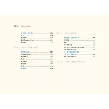 此外,他還告訴你如何從最基本開始,一步步找到屬於自己的閃燈組合,並清楚說明「反平方定律」這個非常重要,卻經常被誤解的攝影原理。拿起這本書,你要做的是左右對照,抓對方向直接套用,搭上自己的創意加以變化,照片自會說明一切。
