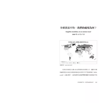 皮凱提認為:「真正的改變不會到來,除非公民能重新掌握社會經濟議題與各種指標,從而組織集體審議。」在這系列思考當下挑戰的文章中,皮凱提拒絕困守現有規則,提出各種⼤哉問、⼤膽而創新的解法建議,並非為了提供唯一的標準答案,而是激發我們也去探問:「更平等更合理的世界,該是什麼樣⼦的?」