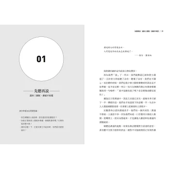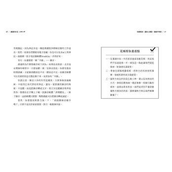帶著這本書,就像是脫不花正在一旁為你加油打氣⸺⸺我們有的是辦法成為一名成功的溝通者。你會發現,過往困擾你的那些話裡的弦外之音,那些你下意識想要逃避的難題,其實都不難解決。